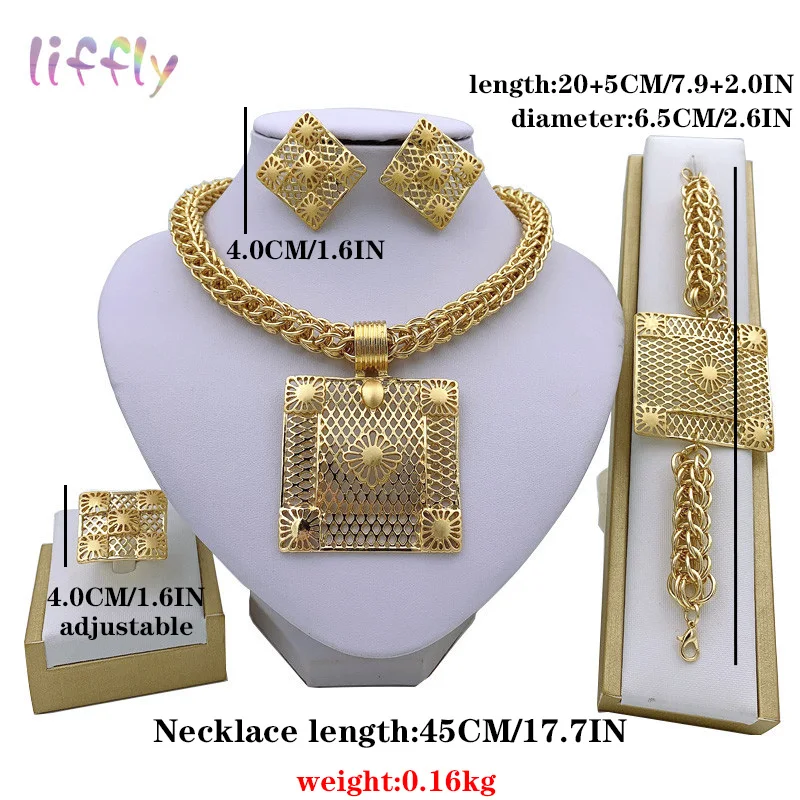 Luxurious Gold African Jewelry Set for Women - Nigerian Bridal Necklace, Bracelets, Earrings, and Rings